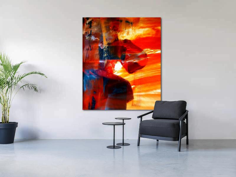 Schilderij aan de wand, schilderij in interieur, kleurrijk schilderij, mixed media schilderij, kunst in huis, kunst in interieur, From selfie to art. Bij Artangeel.com