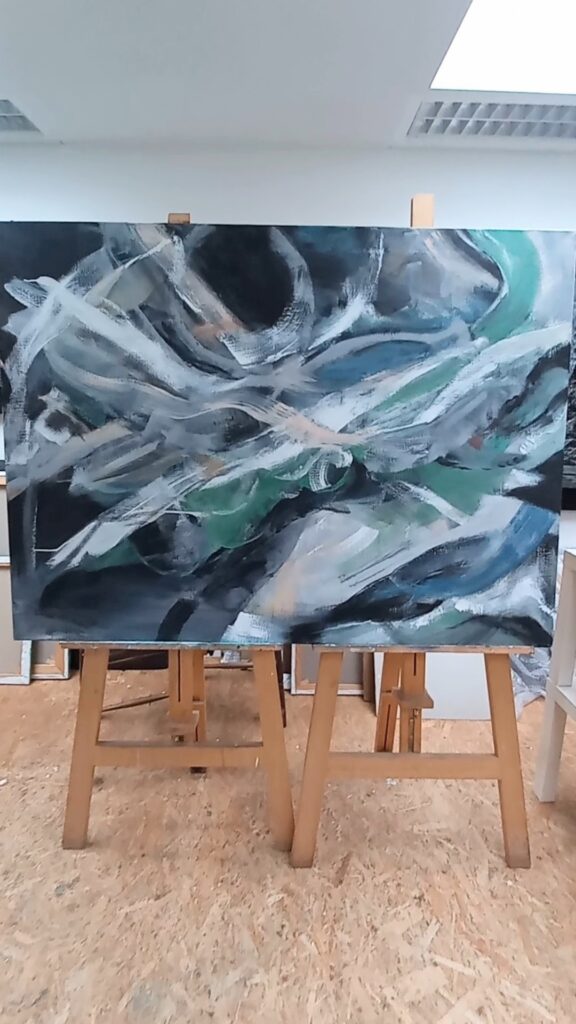 The painting flows with the movement of the artist.